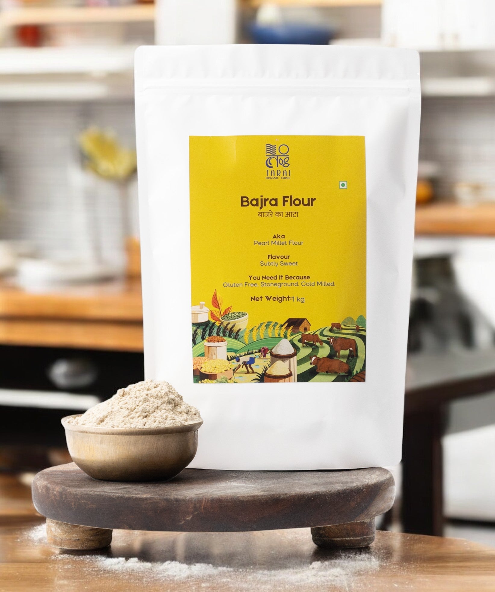 Bajra Flour, also known as pearl millet flour, is a naturally gluten-free flour made from grinding whole pearl millet grains. It boasts a unique, slightly nutty flavour and a fibrous texture. Bajra flour is an excellent alternative to wheat flour, offering a gluten-free, nutrient-rich option for healthier meals.