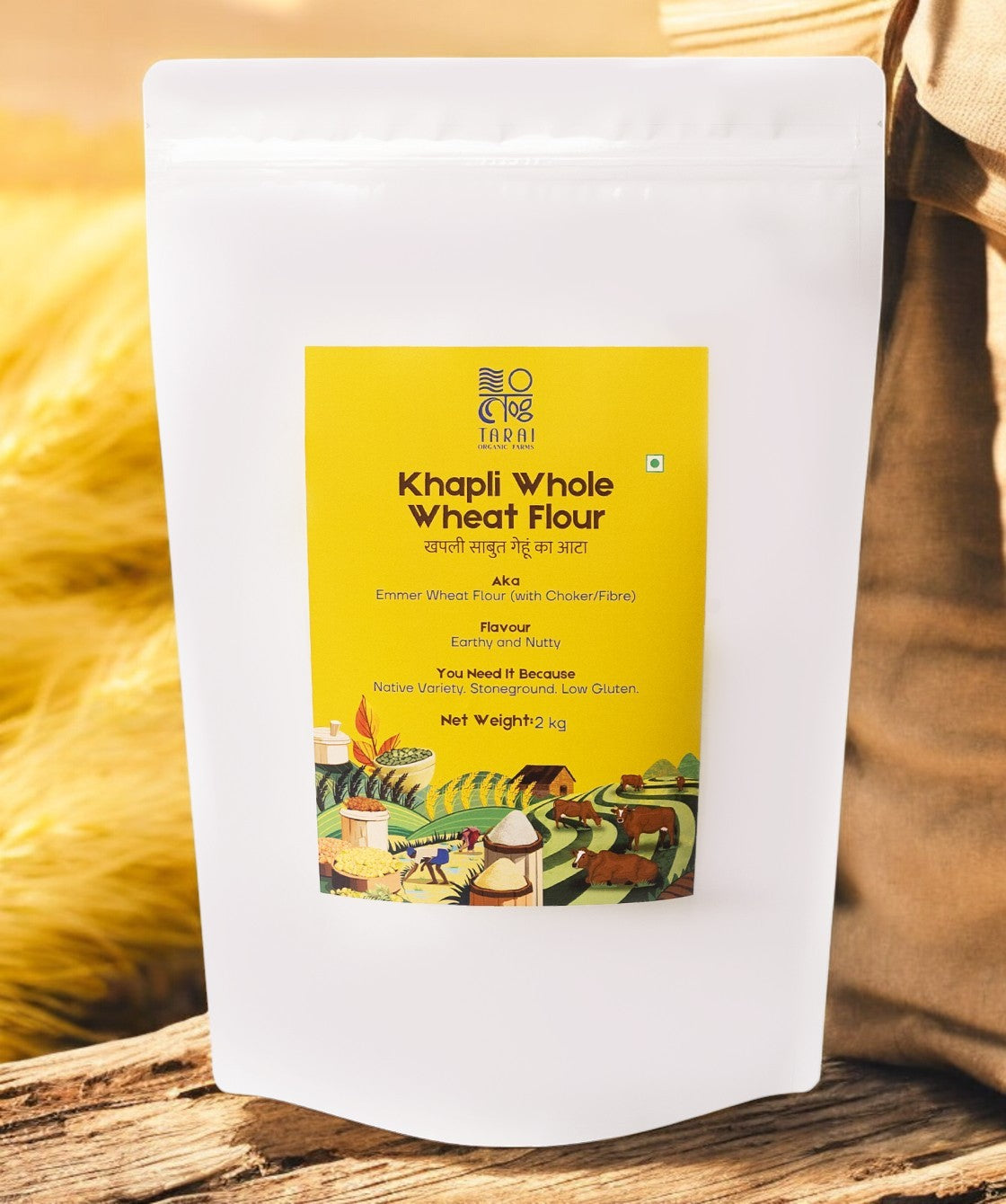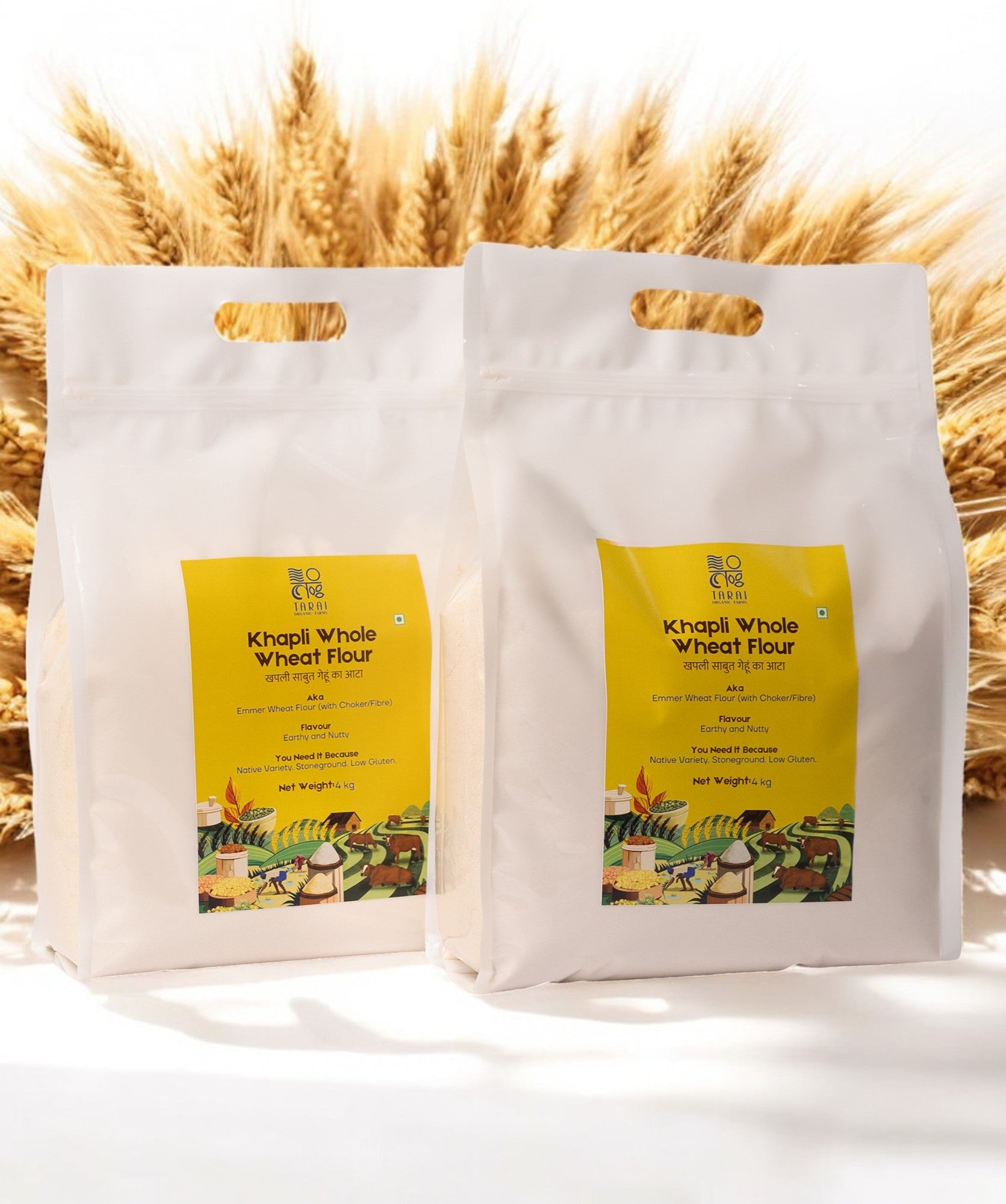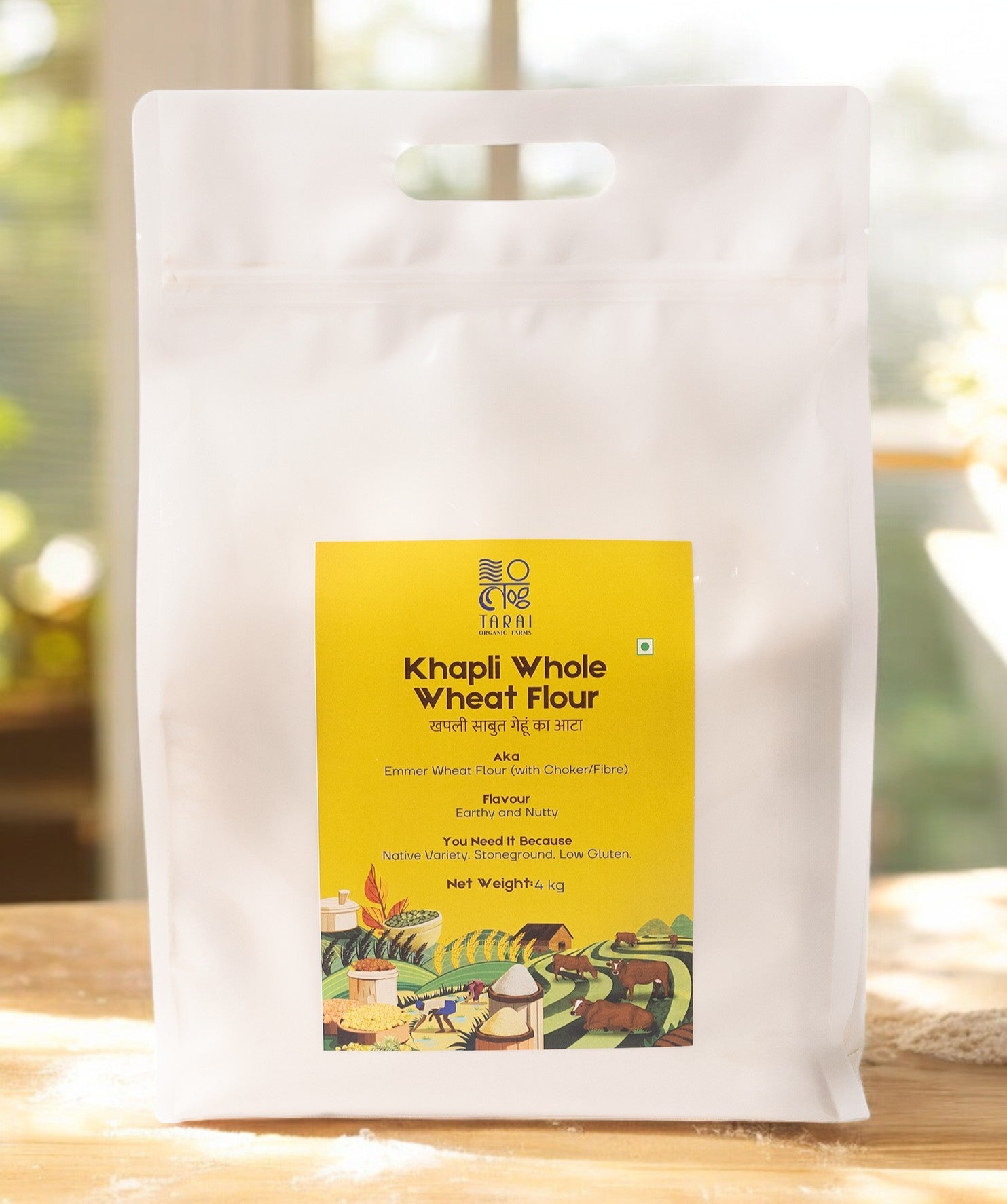 Khapli Whole Wheat Flour, or Emmer Wheat Flour, is an ancient wheat variety native to India, known for its rich nutritional profile. It contains naturally lower gluten and higher fiber compared to regular wheat, making it easier to digest and beneficial for gut health.